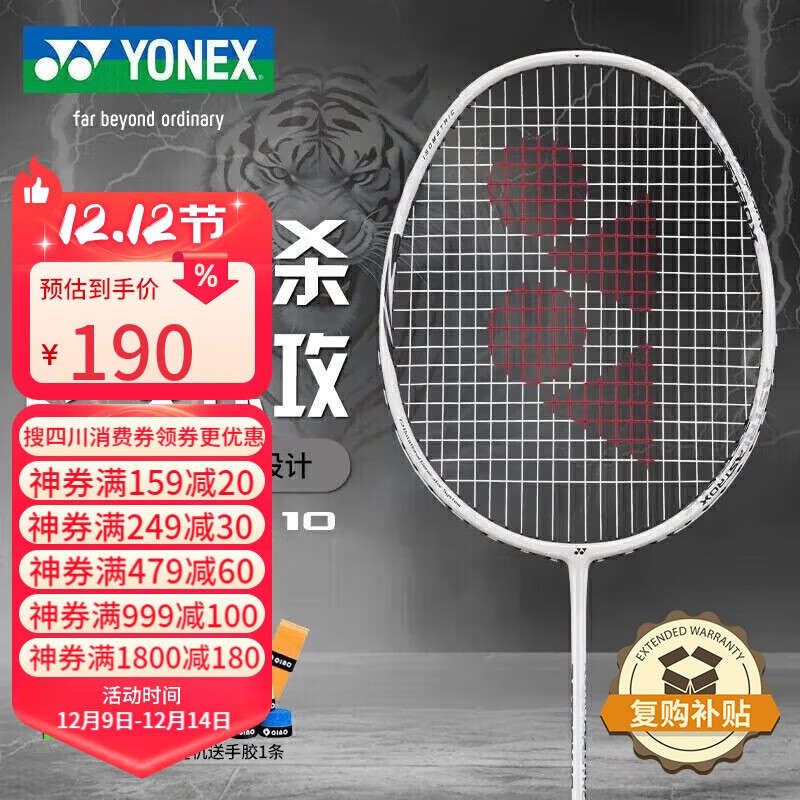 自营YONEX尤尼克斯羽毛球拍天斧进攻高磅全碳素进阶AX10白亮黑已穿线附手胶