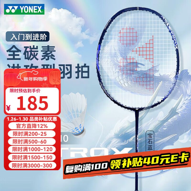自营尤尼克斯(YONEX)羽毛球拍天斧10藏青色AX10超轻全碳素纤维进攻型单拍