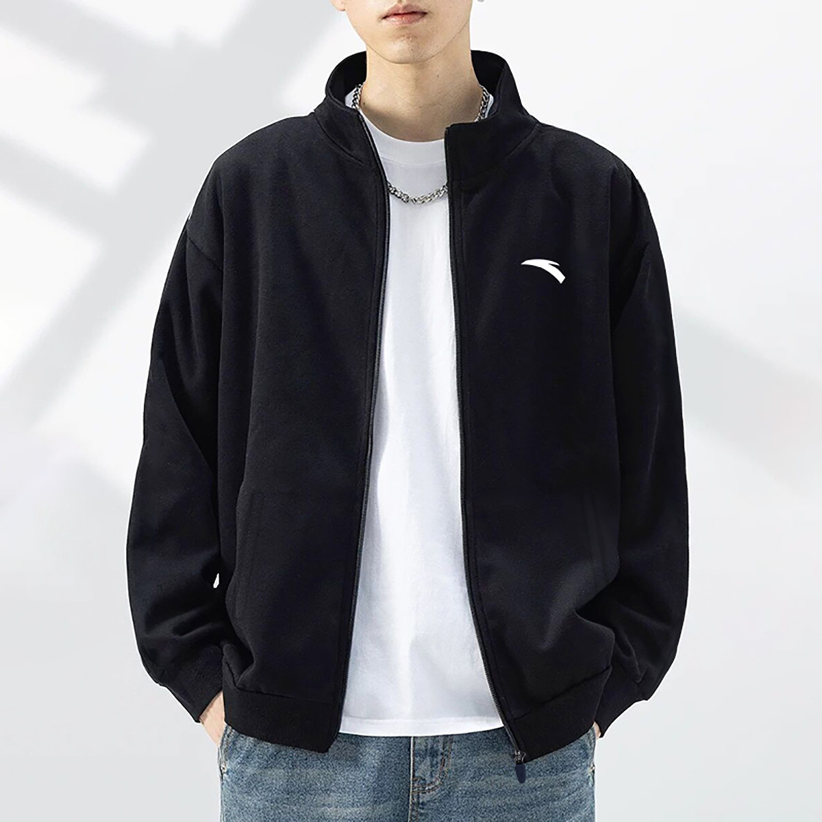 针织立领运动外套男春秋透气开衫纯色训练百搭运动服夹克男士上衣