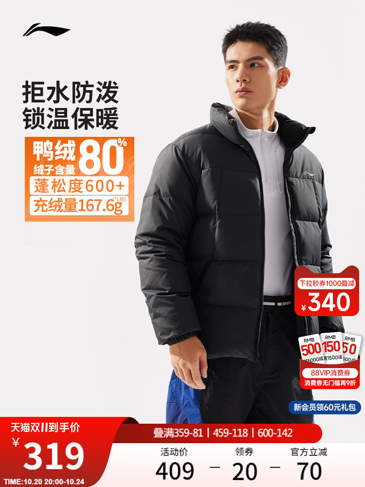 旗舰店李宁羽绒服男士冬季反伍BADFIVE防泼水鸭绒保暖连帽短款运动服男