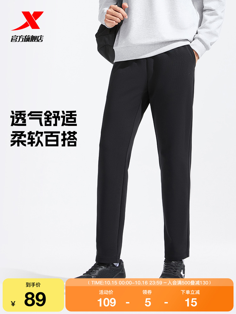 旗舰店特步运动裤男裤秋冬宽松卫裤加绒保暖缩脚裤直筒休闲百搭长裤裤子
