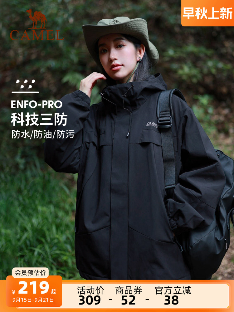 旗舰店骆驼运动登山服外套女士秋冬加绒连帽夹克户外防风防水休闲茄克男