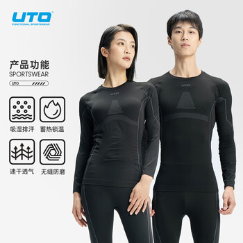 自营悠途(UTO)速干衣女跑步户外运动登山滑雪服保暖内衣套装 黑灰色 S