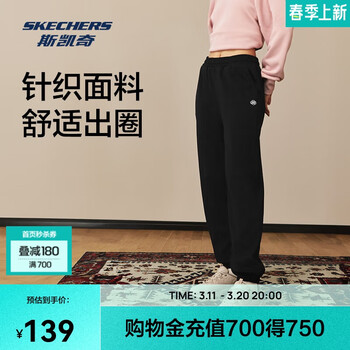 自营斯凯奇女冬季加绒保暖卫裤情侣款宽松针织直筒运动长裤