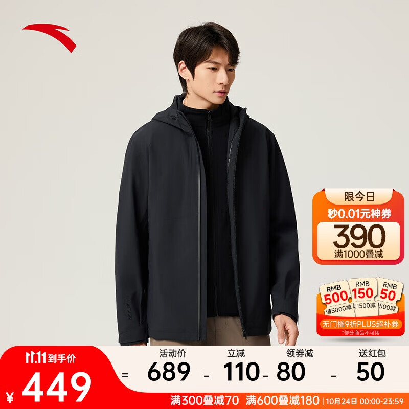 自营安踏水壳3.0冲锋衣丨大地之壳户外三合一冲锋衣男暴雨级登山外套