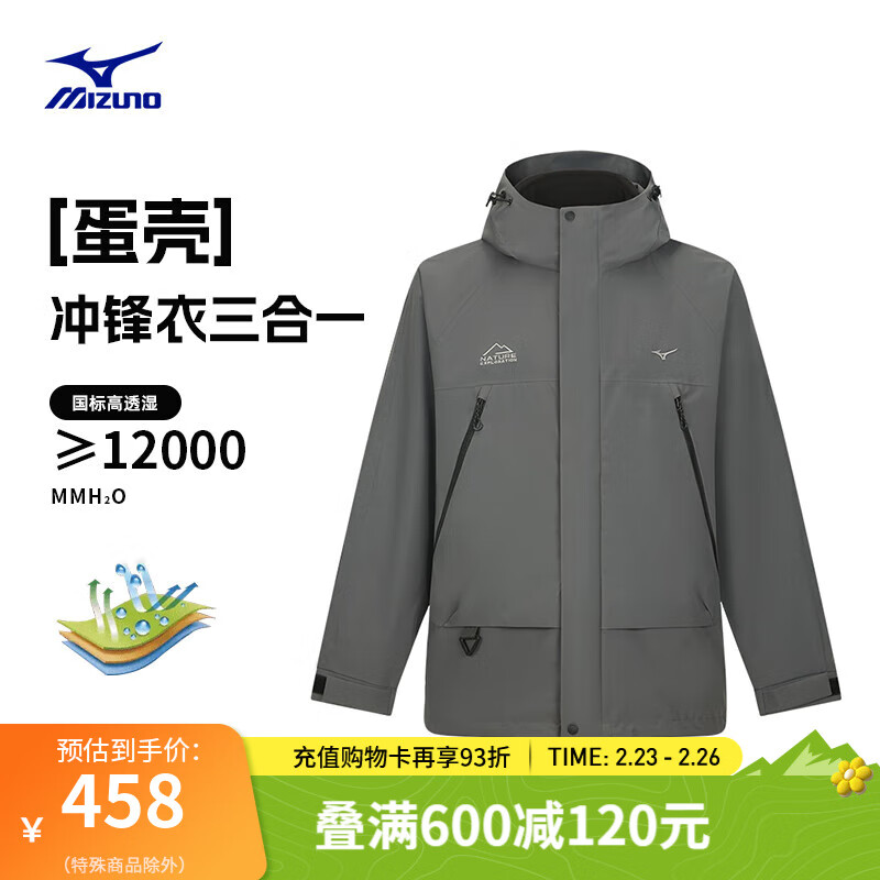 旗舰店美津浓(MIZUNO)男女同款连帽华夫格绒冲锋衣三合一外套夹克 05/绿灰石 2XL (185)