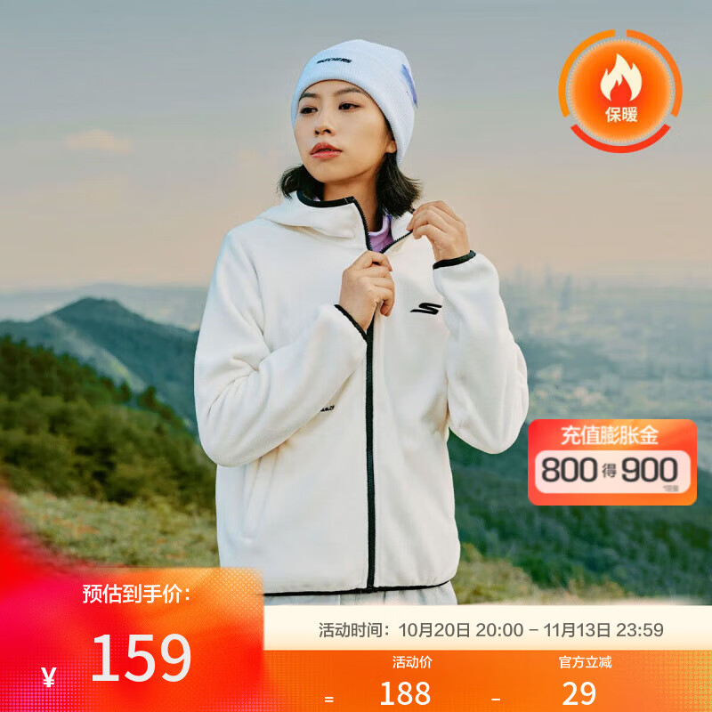 旗舰店斯凯奇【摇粒绒】冬抓绒衣女连帽外套女摇粒绒女士外套运动外套女 棉花糖白/0074 XL