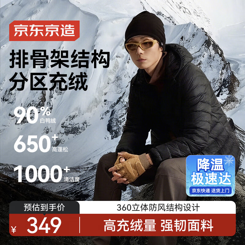 自营京东京造穿山甲轻薄羽绒服 连帽白鸭绒户外秋冬外套短款男 黑色 L