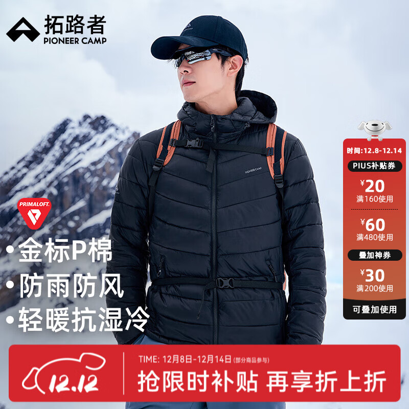 旗舰店拓路者(Pioneer Camp)雪狐Primaloft金标棉衣团购男P棉棉服女冬季户外防风保暖外套男 黑色-男 2XL