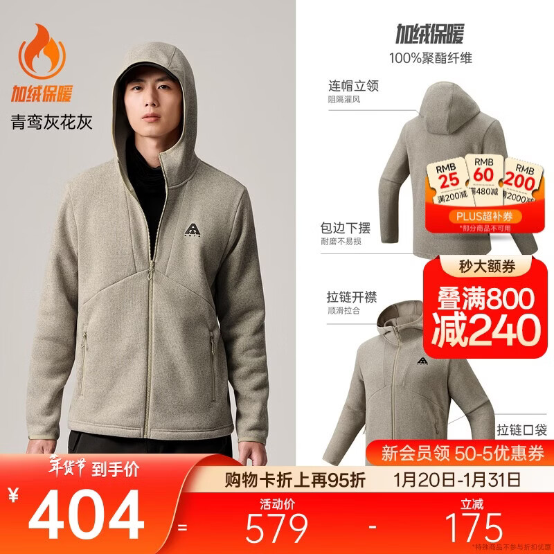 旗舰店安踏x中国国家地理| Polartec粗针抓绒外套男户外厚上衣152546705 KK0272SH奶咖灰[双染花灰]-3 XL (男180)