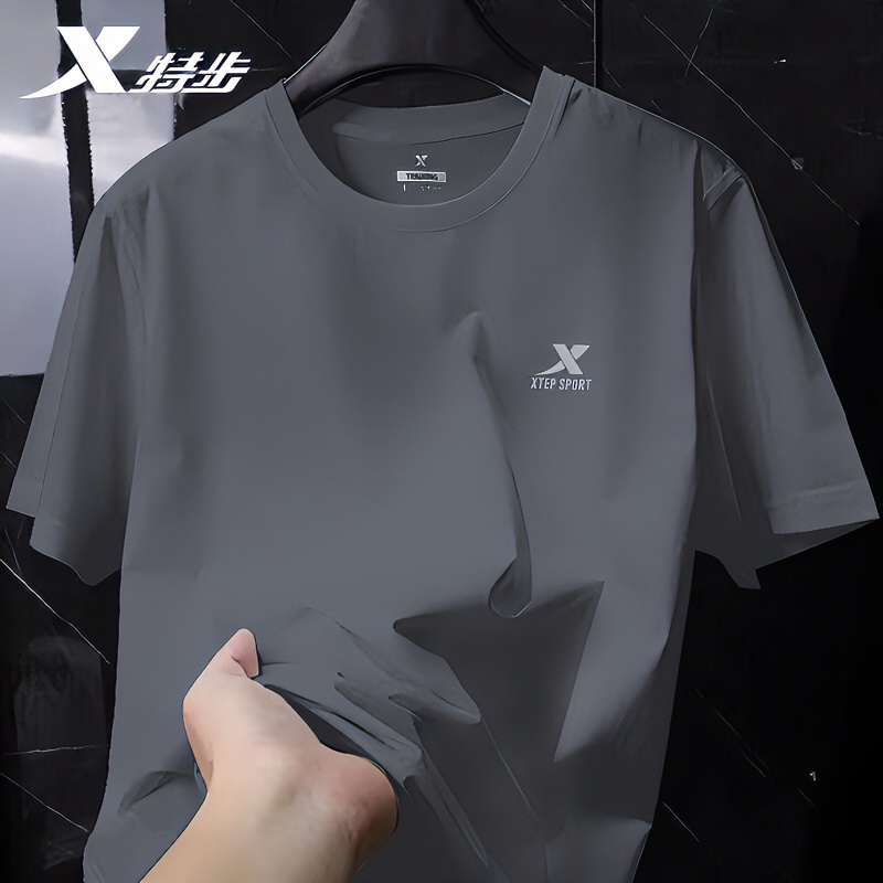 特步短袖T恤男士速干衣2024春夏季新款宽松圆领冰丝跑步运动t半袖