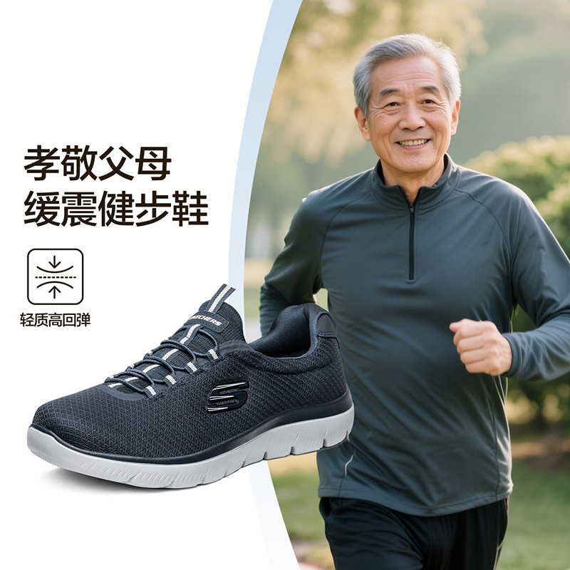 斯凯奇 【轻质透气耐磨舒适】男鞋一脚蹬套脚运动休闲鞋健步鞋轻跑鞋夏