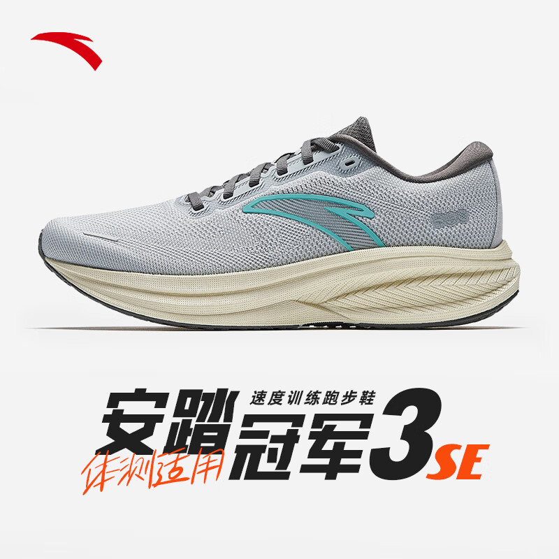 安踏(ANTA)冠军3SE跑步鞋男鞋专业竞训氮科技跑鞋缓震耐春季运动鞋男体测 【弦科技+双层氮科技】霜塔灰-4 42 (260mm)