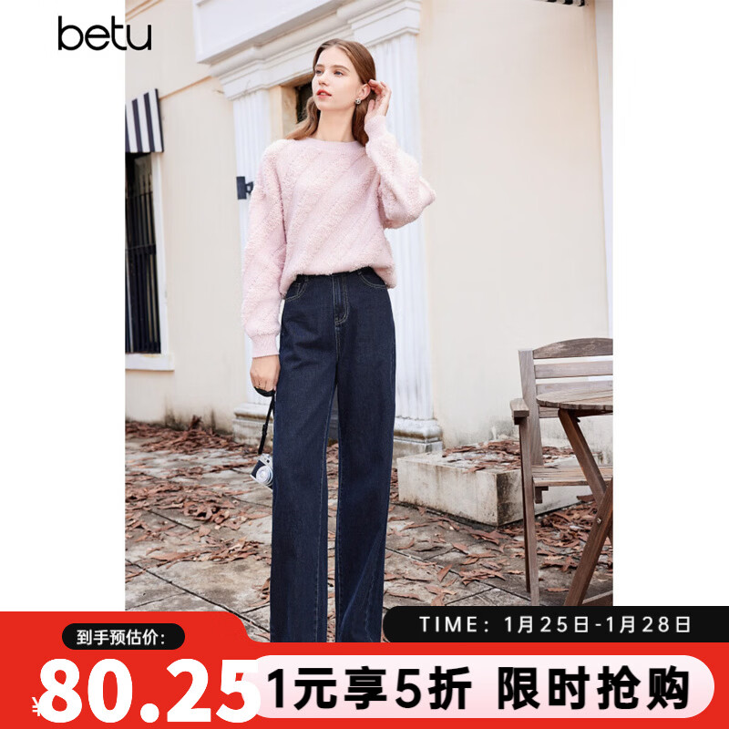 旗舰店百图betu女装冬季新款牛仔裤百搭高腰显瘦直筒阔腿裤女2311T55 深牛仔蓝 M