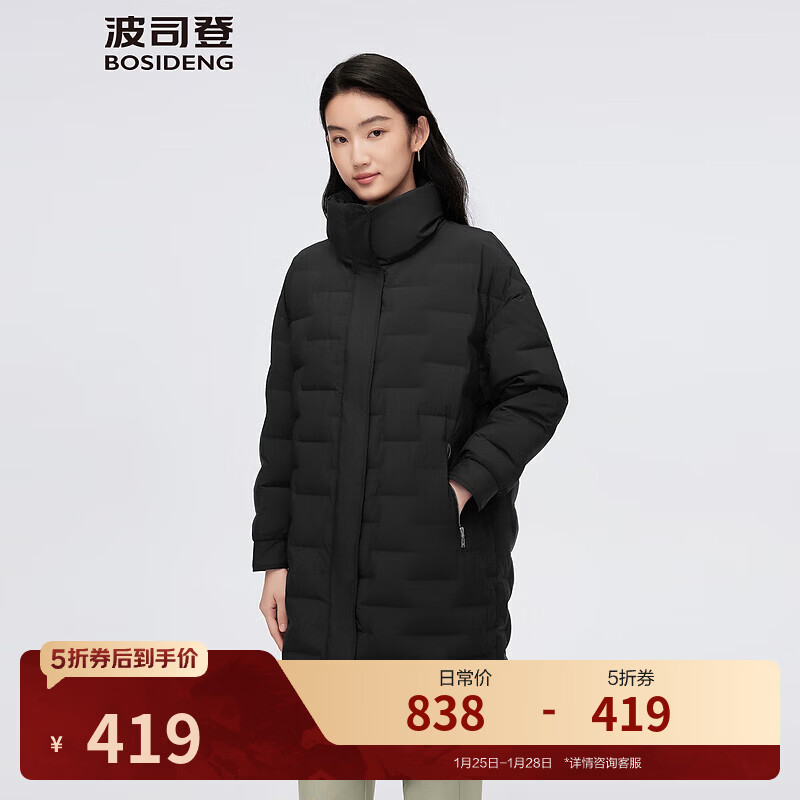 旗舰店波司登(BOSIDENG)【断码清仓】轻薄鹅绒羽绒服女中长款90绒收腰通勤保暖翻领外套 【店长推荐】黑色8056 M 165/88A