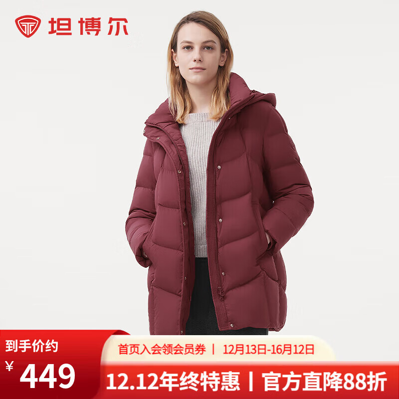 旗舰店坦博尔2025冬季新款休闲百搭可脱卸帽羽绒服女加厚短款妈妈装新年红560D 蝶羽红 L