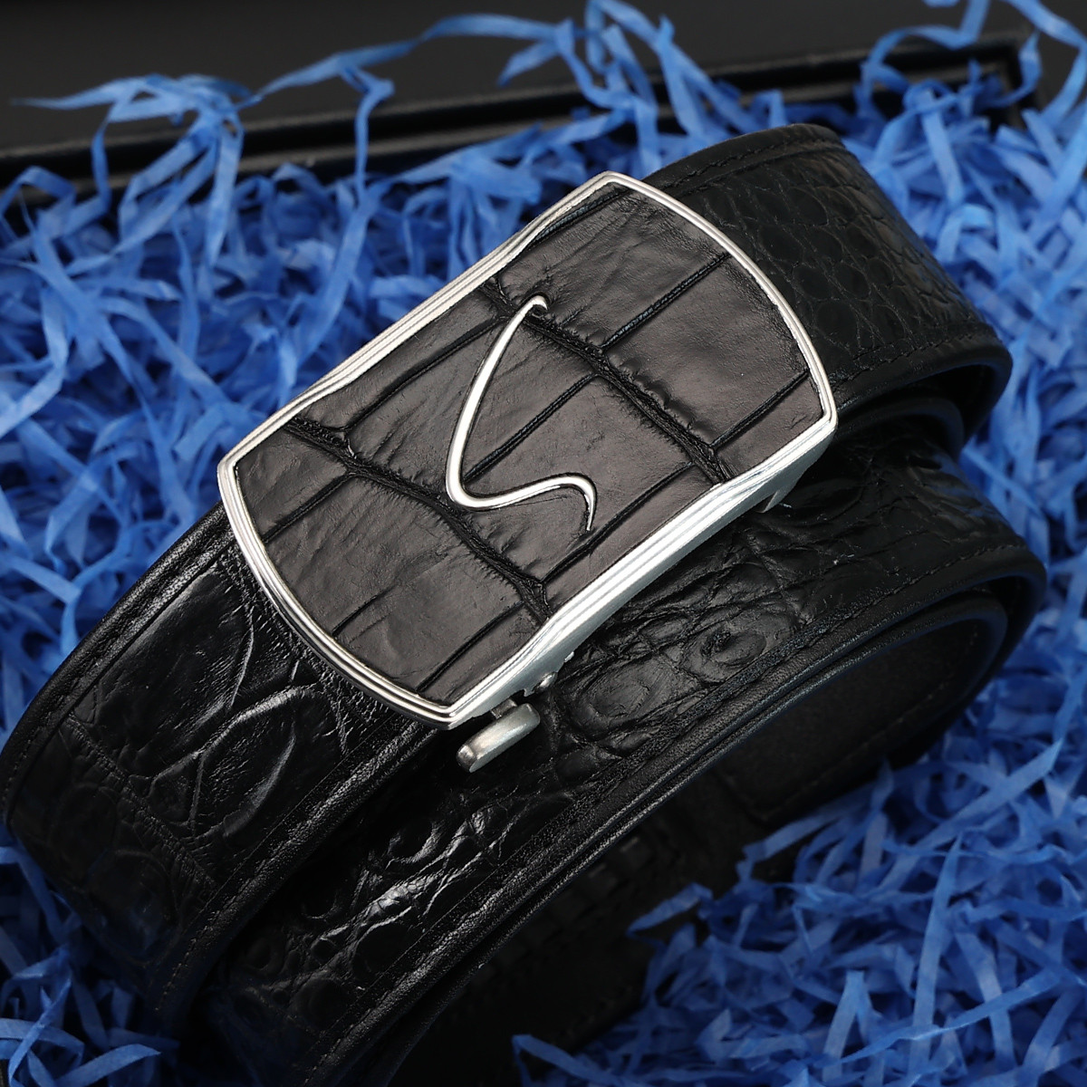 沙驰 【珍稀原生态】男鳄鱼肚皮带内穿腰带奢华礼盒包装【节日礼物】