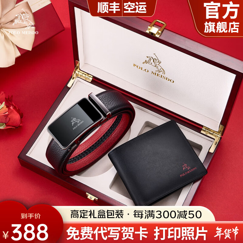 旗舰店保罗美思得男士皮带男钱包礼盒套装男真皮腰带钱夹本命年礼物送男友老公父亲 600547+2332-1【红木盒】 120cm 其他长度联系客服备注