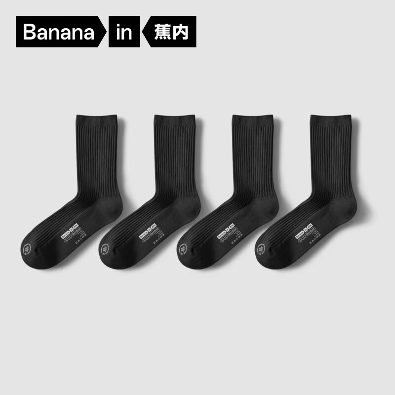 旗舰店蕉内银皮3系袜子男女士精梳棉抗菌防臭运动透气不易勒脚秋冬长短筒4双 [男长筒]黑黑黑黑 4双 均码 男士(39-42)