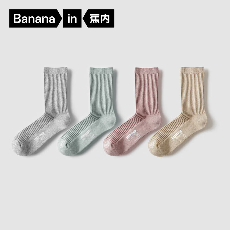 旗舰店蕉内银皮3系女士短长筒袜子新疆精梳棉运动透气7A抗菌防臭秋冬季4双装 [长筒]浅卡其+浅灰+玉绿+橘粉 4双
