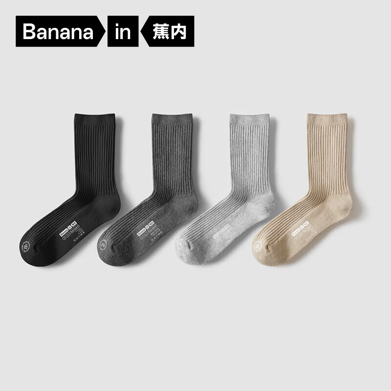 旗舰店蕉内银皮3系女士短长筒袜子新疆精梳棉运动透气7A抗菌防臭秋冬季4双装 [长筒]浅卡其+浅灰+深灰+黑色 4双