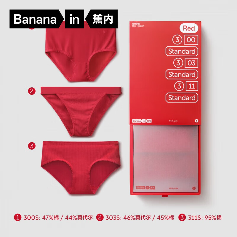 旗舰店蕉内红色计划3系情侣内裤男士平角女士三角本命年结婚送礼物礼盒3件装 [女三角]红色礼盒 3条 S