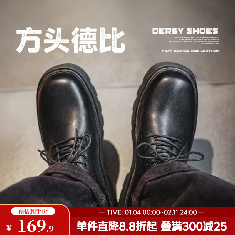 旗舰店马登黑色方头德比鞋男厚底增高休闲马丁通勤鞋子复古工装大头皮鞋男款 星耀黑 【磨砂质感/男士正装皮鞋/西装鞋/轻奢高端】 41 男码