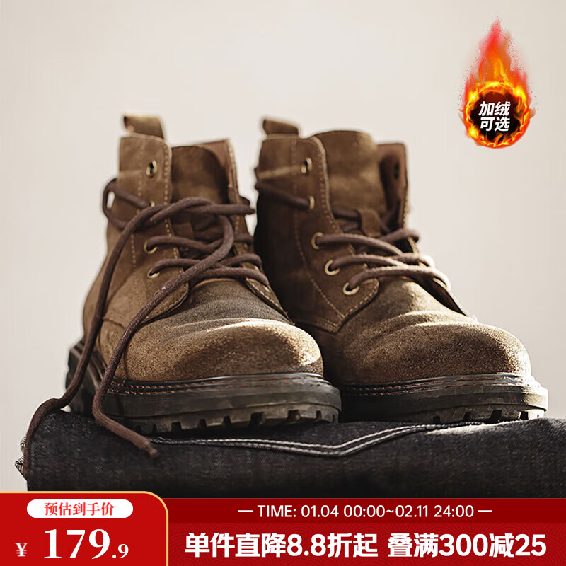 旗舰店马登男士马丁靴英伦风蜡面工装靴秋冬加绒高帮真皮沙漠靴复古男鞋子 黄棕色 40 (250mm)