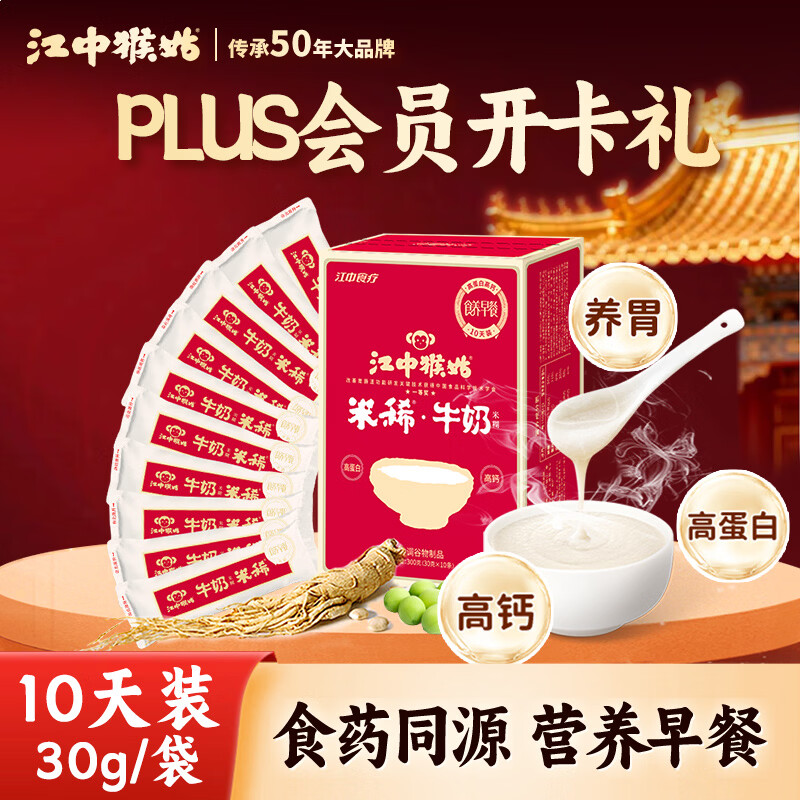 自营江中猴姑米稀牛奶米糊10天装高蛋白高钙营养早餐代餐麦片学生职场300g