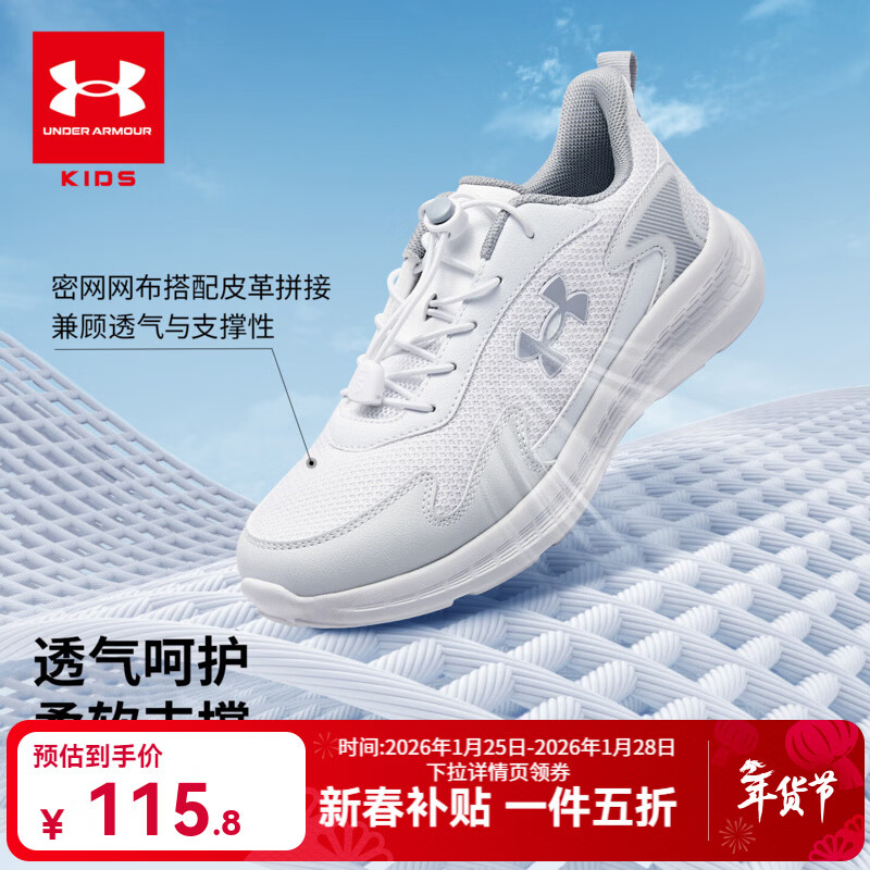 旗舰店安德玛儿童舒适跑鞋男女童休闲透气耐磨运动鞋童鞋跑鞋 白色【鞋垫一体化 不可分离】 33