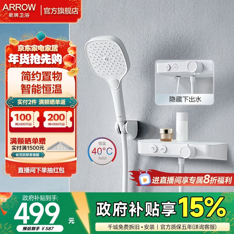 旗舰店箭牌(ARROW)双功能淋浴花洒套装置物平台分体式淋浴花洒增压喷头F300简易花洒 F300哑光白AE3252恒温分体置物款