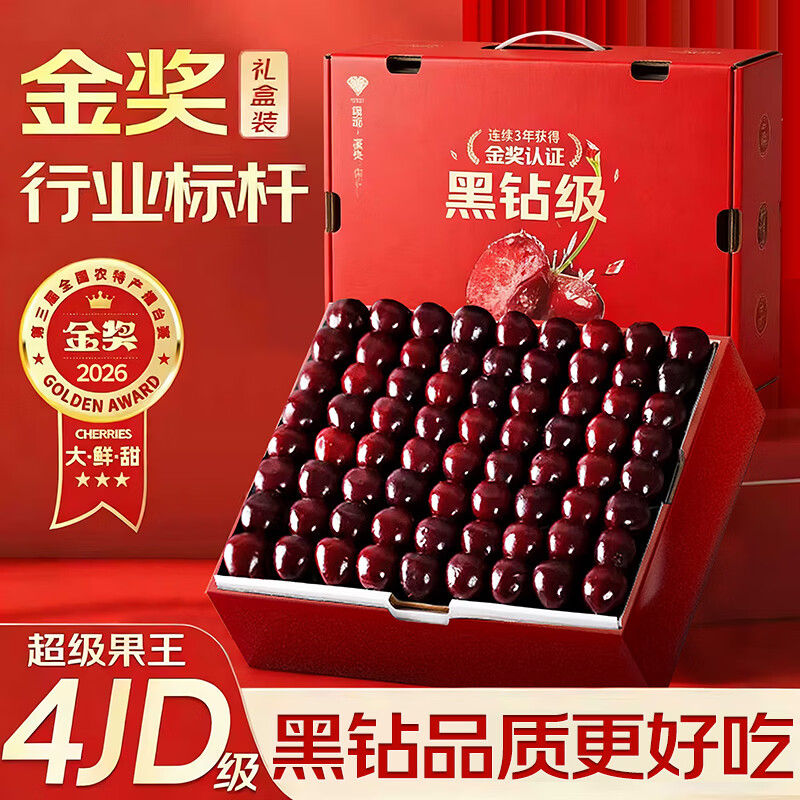 旗舰店颜曼箐智利车厘子【JD多地次日达】大樱桃进口车厘子5kg4J级水果礼盒装 5斤(净重) 【奢华礼盒+保温箱】 超级巨无霸4J 单果32-34mm