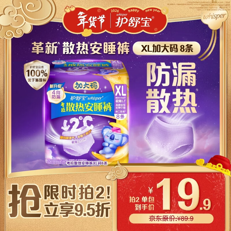 自营护舒宝考拉散热安睡裤XL加大码8条裤型卫生巾姨妈巾自营密封产后适用