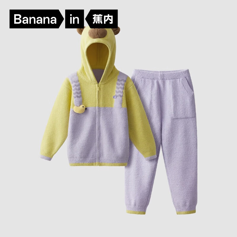 旗舰店蕉内5系动物主题儿童睡衣套装男女童加厚加绒连帽卡通家居服童装秋冬 亮紫-水豚 110