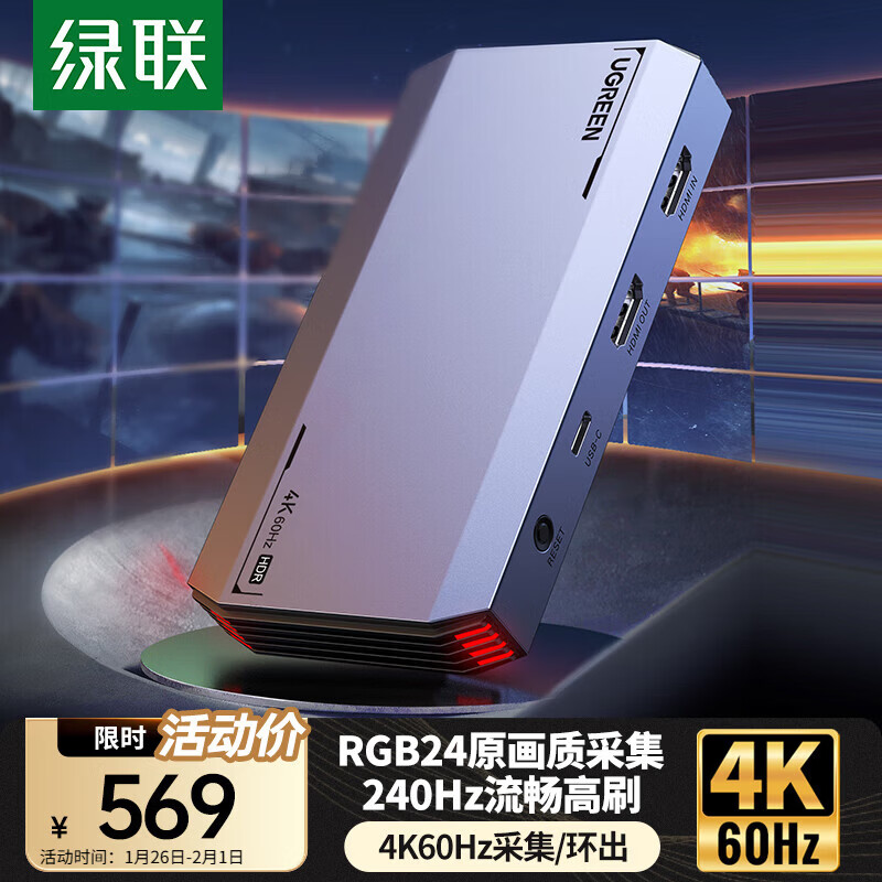 百亿补贴绿联视频采集卡直播专用usb器4k高清hdmi相机手机适用switch2/ps5