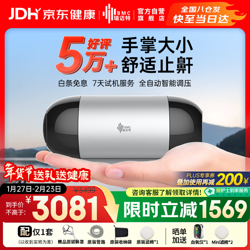 自营瑞迈特单水平睡眠呼吸机全自动旅行家医用无创止鼾呼噜便携掌上口袋Mini