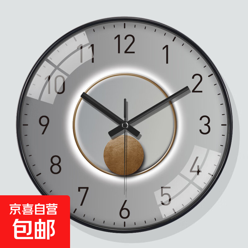 自营现代简约光影钟表创意个性装饰石英钟挂钟客厅艺术卧室电波时钟 A397黑色【静音机芯】 8英寸 (直径20厘米)偏小