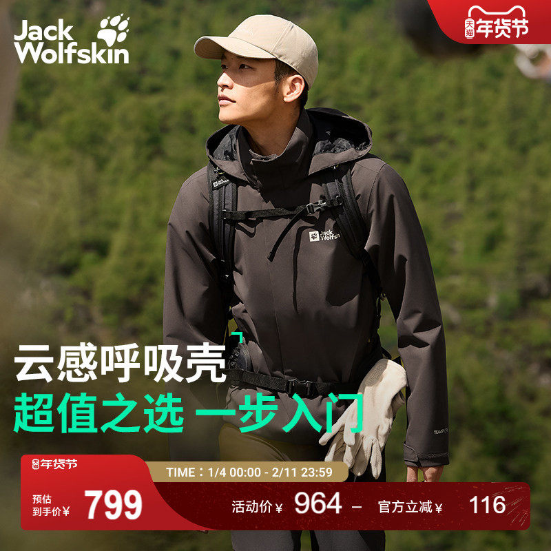 旗舰店JackWolfskin狼爪25秋冬TRAILTIME男款防风防水多色冲锋衣A63903A
