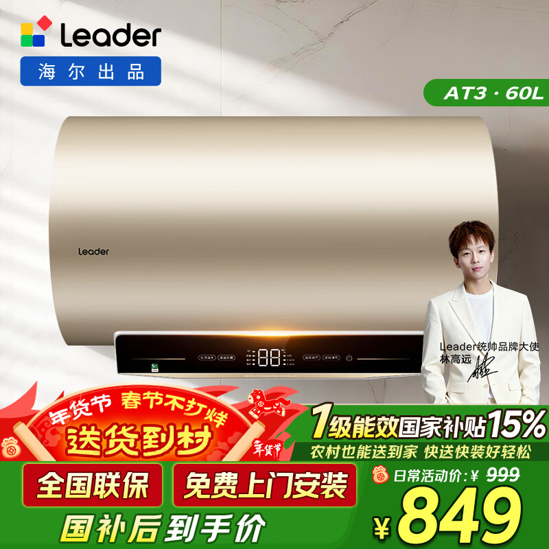 自营海尔出品统帅 60升电热水器京东自营上门安装 3300W变频速热 一级能效节能家用储水式LEC6002-AT3U1