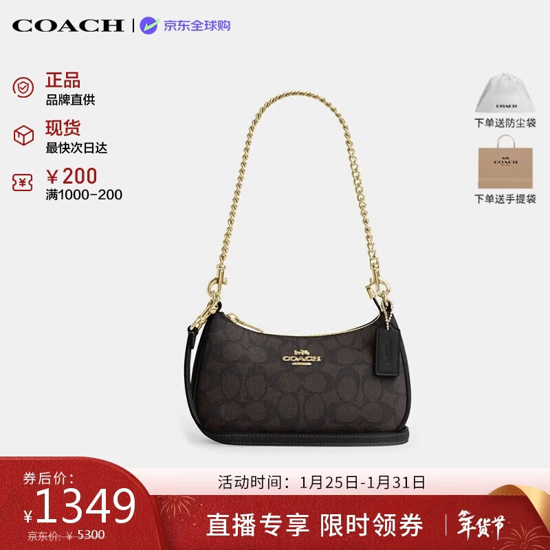自营蔻驰(COACH)【品牌直供】奢侈品女包TERI半月包腋下单肩包 黑色CW323生日礼物