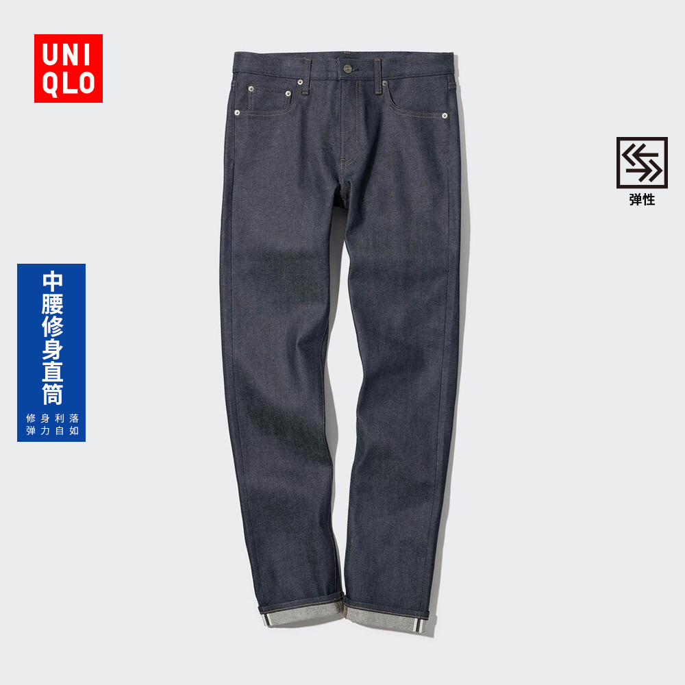 旗舰店优衣库男装弹力修身牛仔裤/原色产品休闲直筒463909