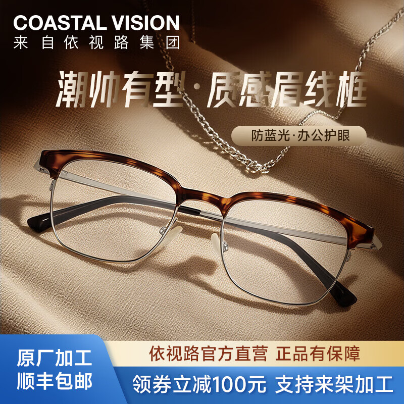 旗舰店依视路(ESSILOR) 钻晶系列高清耐磨防蓝光近视超薄镜片专业配度数眼镜架男女镜框 金属-全框-2062TT-玳瑁色 镜框+依视路A4防蓝光1.56现片