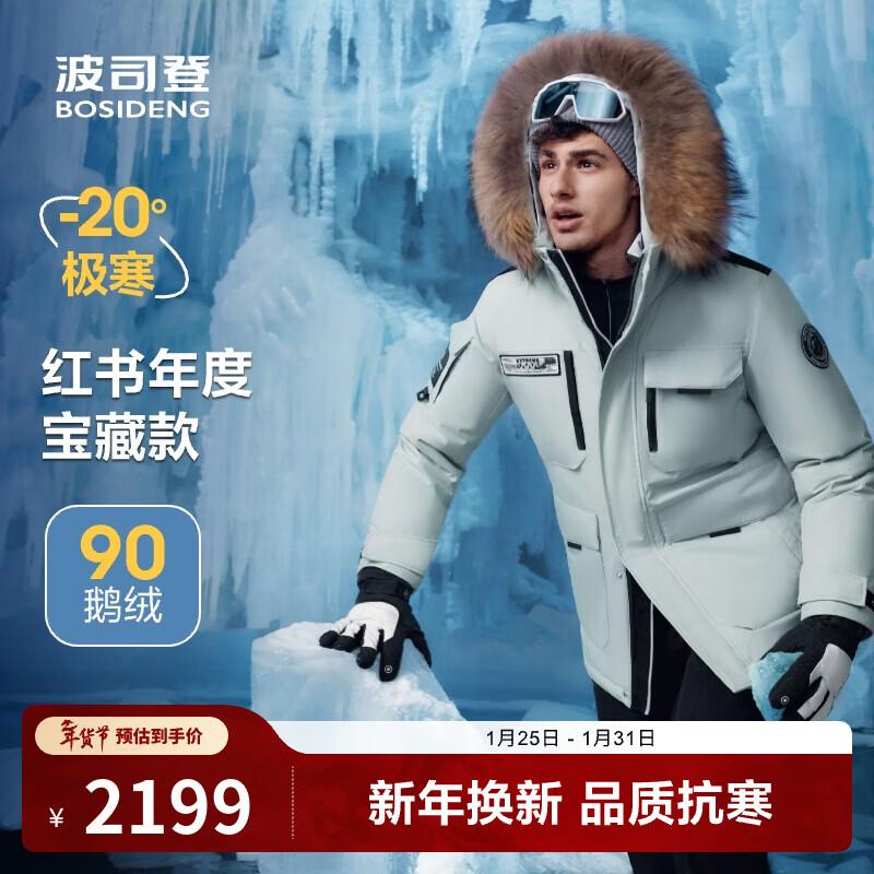 旗舰店波司登(BOSIDENG)极寒90鹅绒羽绒服短款冬季男女款一手长大毛领保暖加厚外套 冰川绿4631 M 165/88A