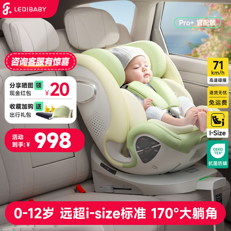 旗舰店ledibaby乐蒂宝贝婴儿童安全座椅0-4-12岁汽车用宝宝座椅车载可坐躺 太空舱Pro+官配版【春芽绿】