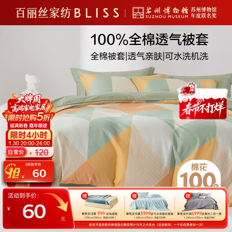 自营百丽丝水星家纺出品纯棉被套单件100%全棉被罩 学生单人宿舍床品被套