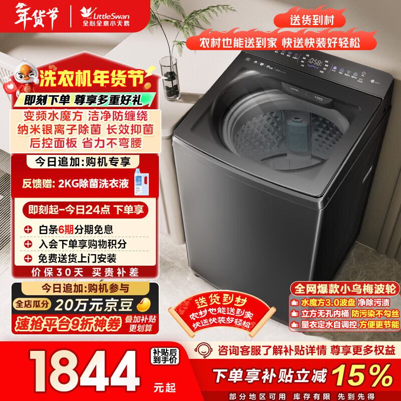 自营小天鹅(LittleSwan)小乌梅轻奢版 波轮洗衣机全自动家用 10KG 水魔方防缠绕 TB10VE20D 以旧换新 国家补贴 京东自营