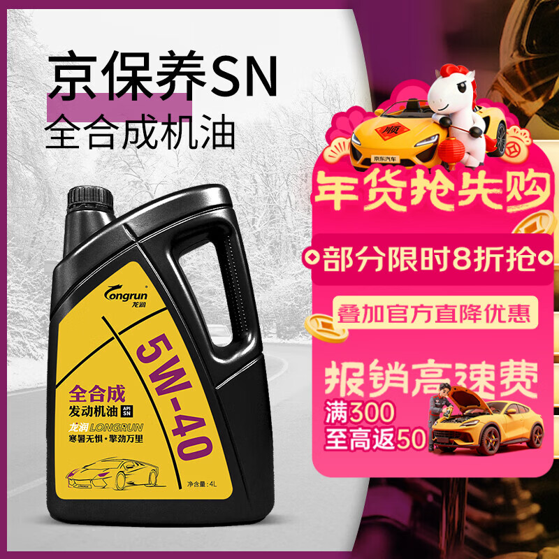 自营龙润润滑油 全合成机油5W-40 SN级4L 京东自营旗舰店汽车保养汽机油京东养车