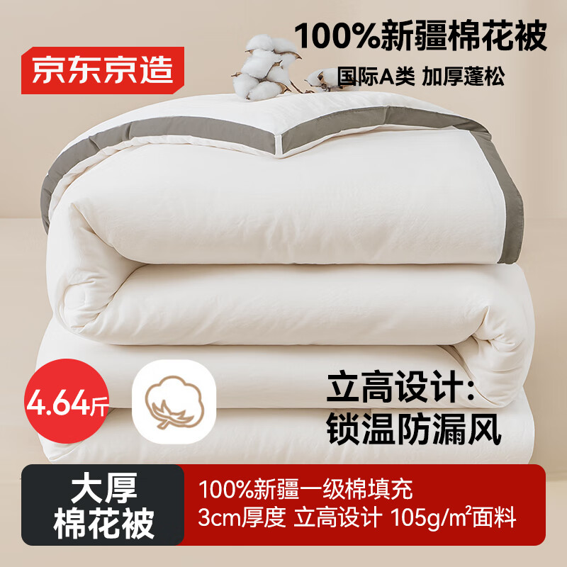 自营京东京造大厚棉花被 新疆棉被加厚纯棉被芯被子秋冬 春秋被4.64斤 2x2.3m