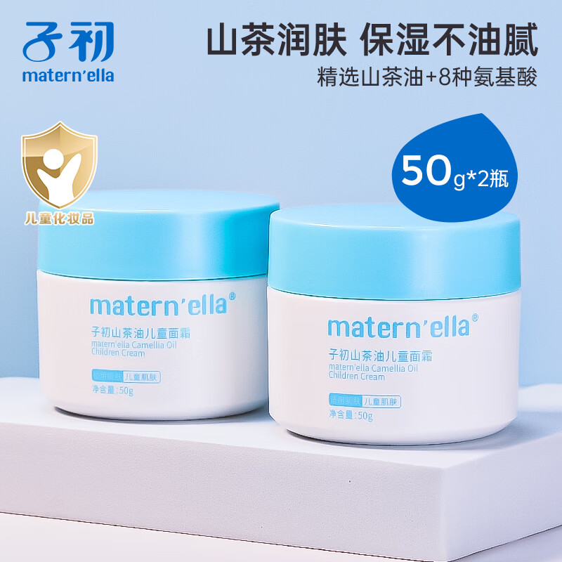 旗舰店子初儿童润肤霜补水润护秋冬擦脸保湿护肤面霜不粘腻保湿霜 山茶油面霜50g*2瓶