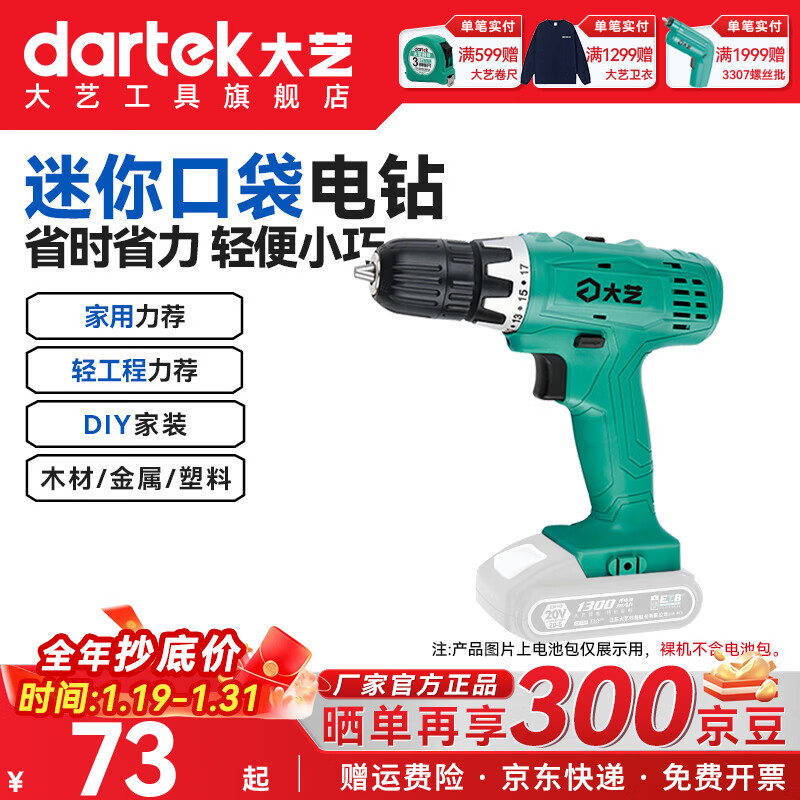 旗舰店大艺手电钻家用20V锂电电动手电钻充电电钻多功能电动螺丝刀原装正品 T28双速【裸机-无电池充电器】